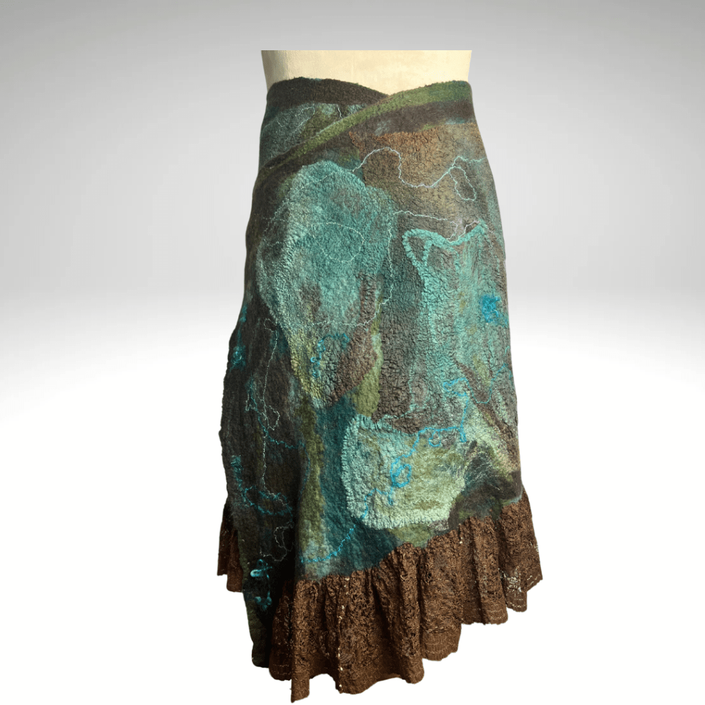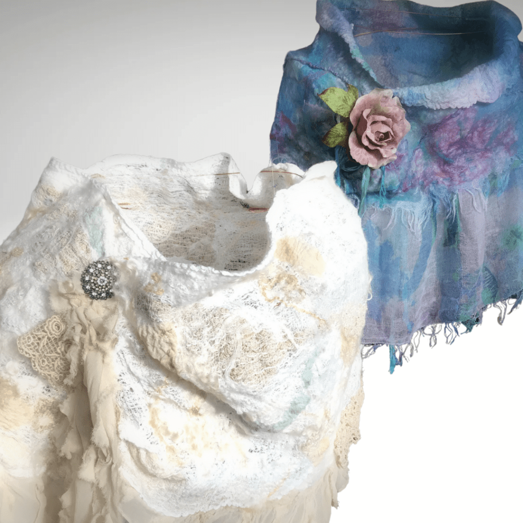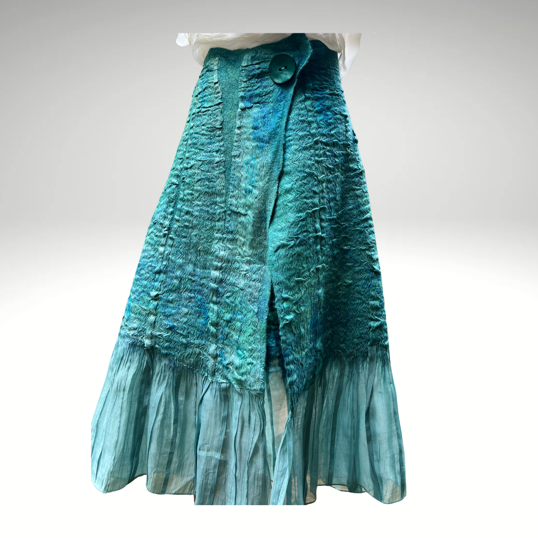 All three of these pieces started out as skirts purchased from a local thrift store! The fabric of each skirt was spectacular, and I was inspired to work them into my Nuno Felting.