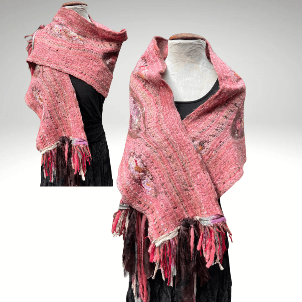 When I first started to felt, I made scarves. In time, I moved on to larger pieces, but I still like making scarves. Did you know that keeping your neck covered will warm your whole body?